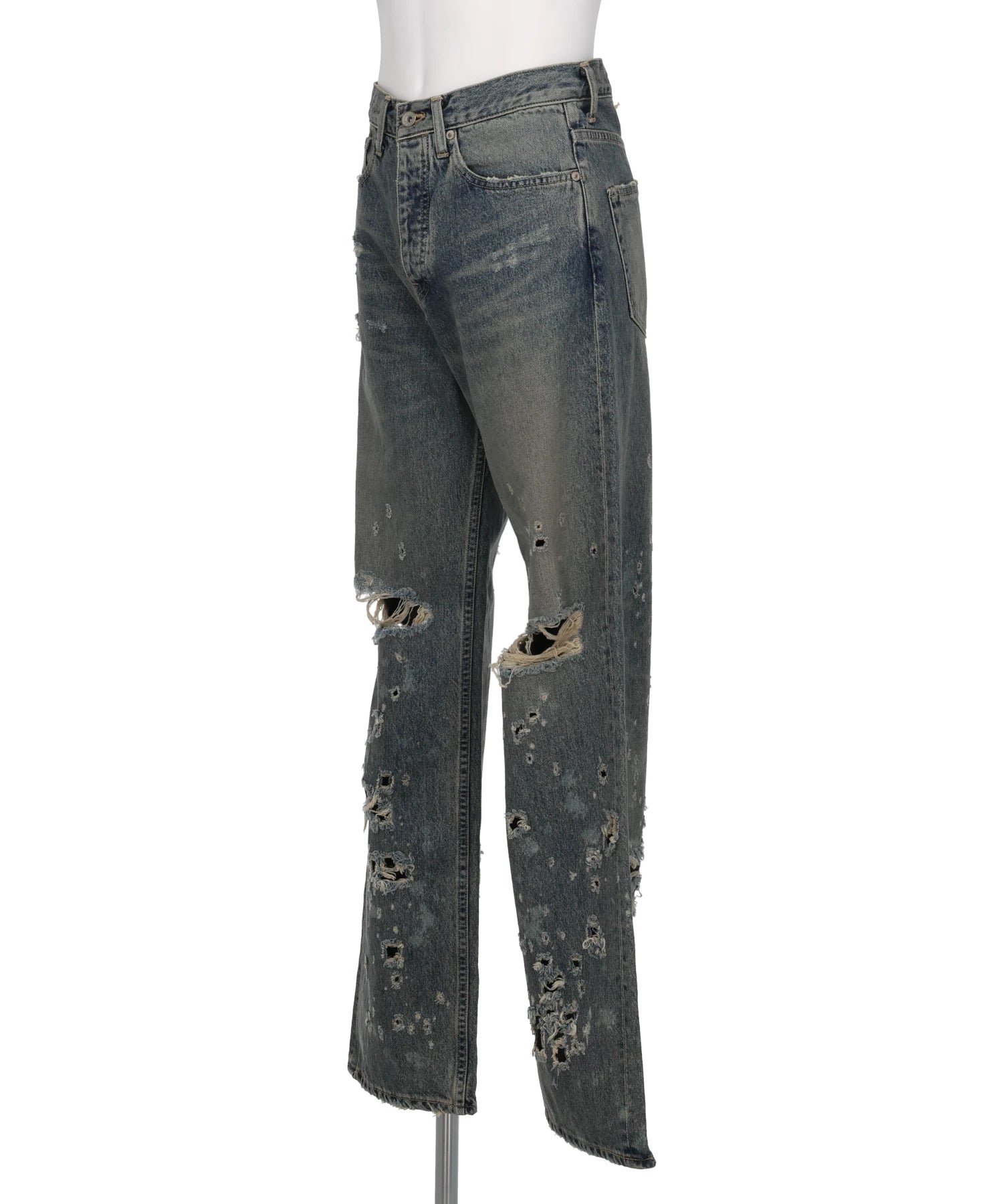 “DAMAGE” STRAIGHT DENIM PANTS