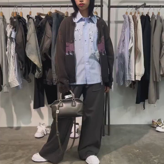 裾、袖口は、まるでニットがほつれたようにデザイン。