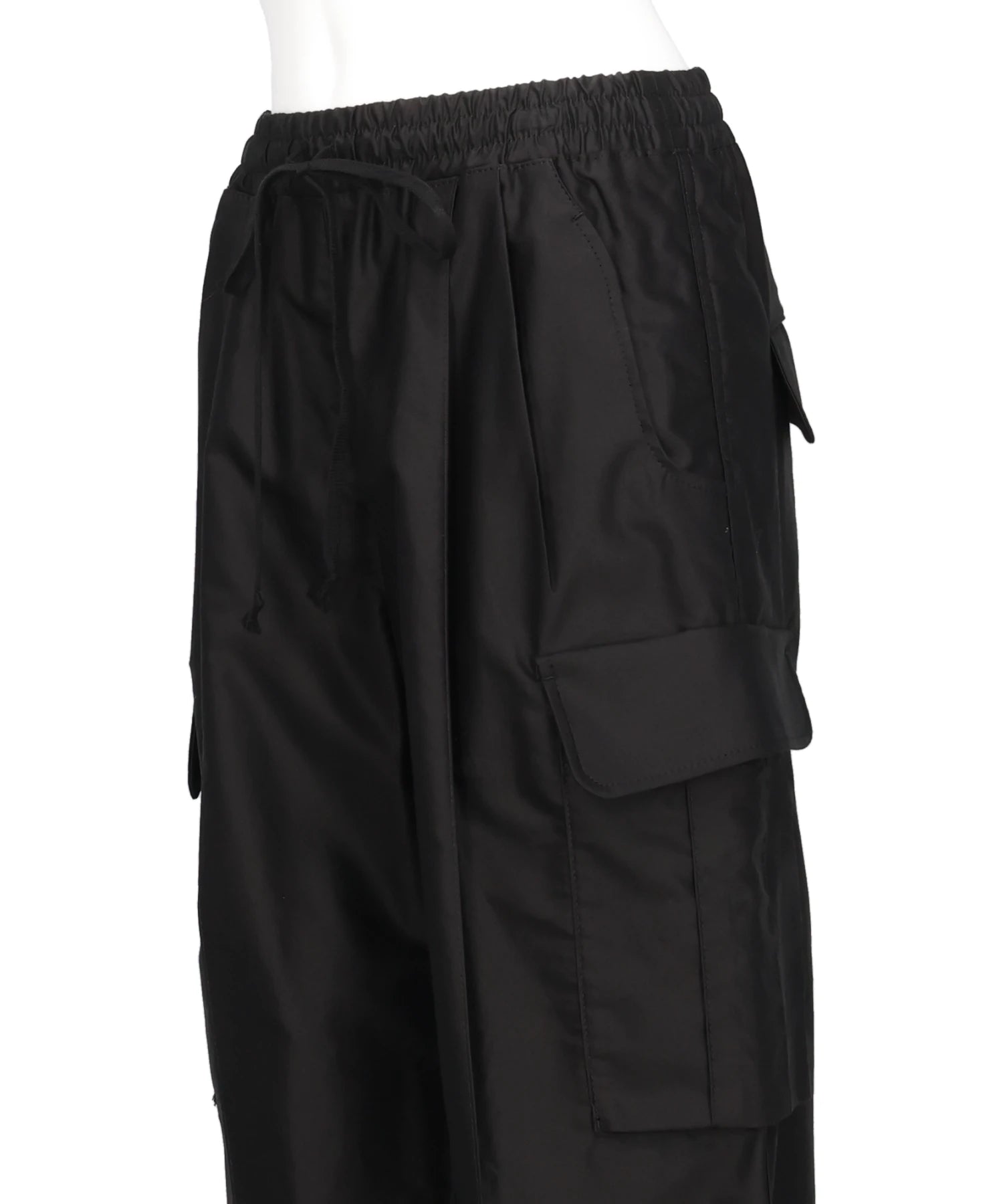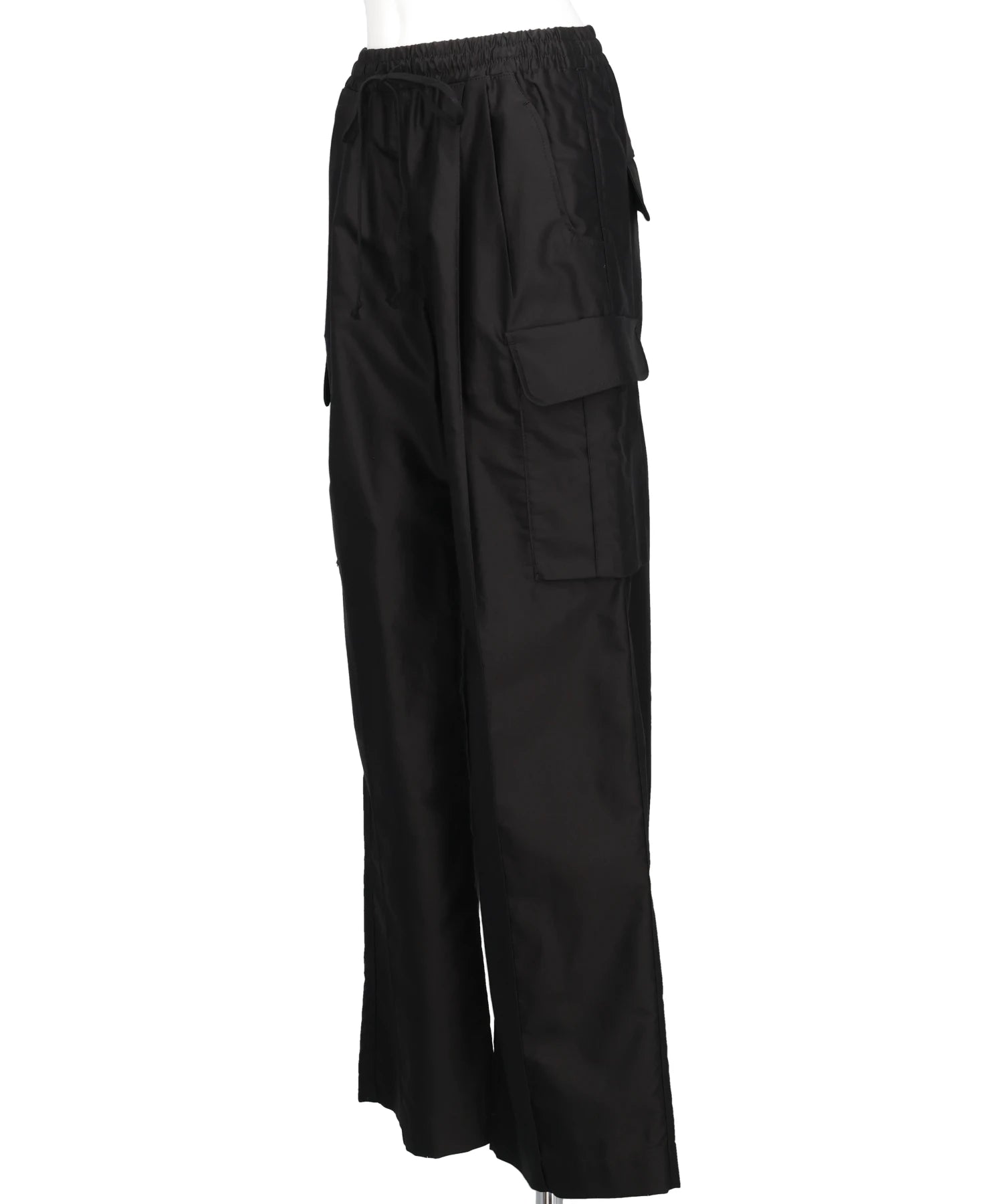 上品な光沢としなやかなコットン素材が目を惹くカーゴトラウザーズ。滑らかな肌触りと光沢、高い強度を兼ね備え、ウエストはゴムとコードを配し、ゆったりとリラックスしたスタイルに。サイドに大きめのフラップボケット付きでアクティブな印象を与えつつ、構築的なシルエットを実現する。ドレスパンツのようなセンタープリーツが、ミリタリースタイルのパンツにエレガントなムードをプラス。長く愛用することで、色味や風合いの変化も楽しめる1着。