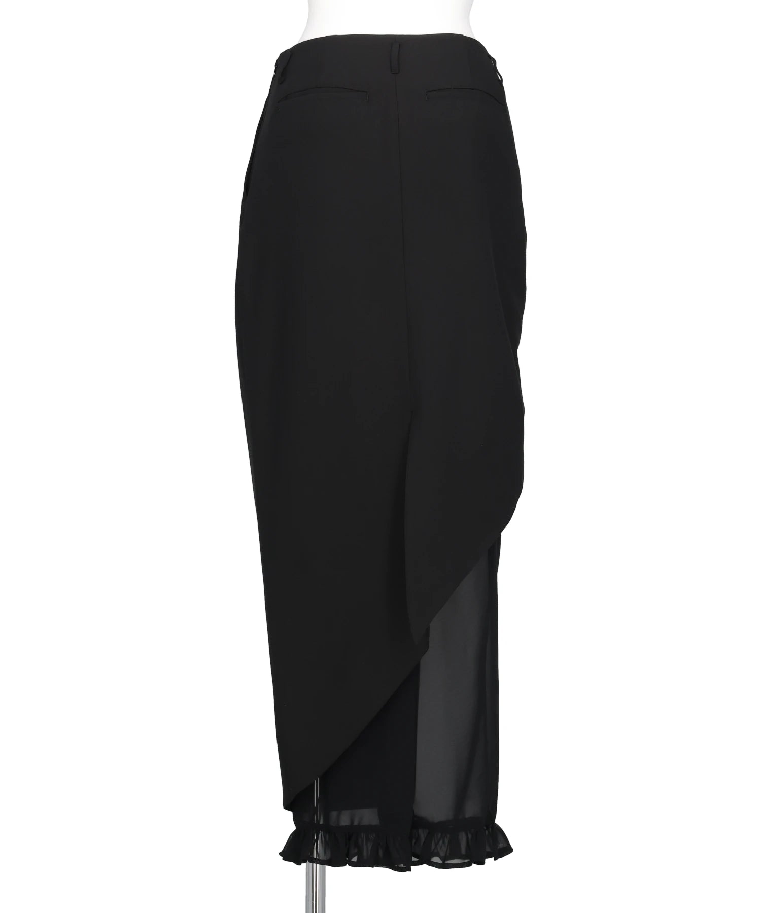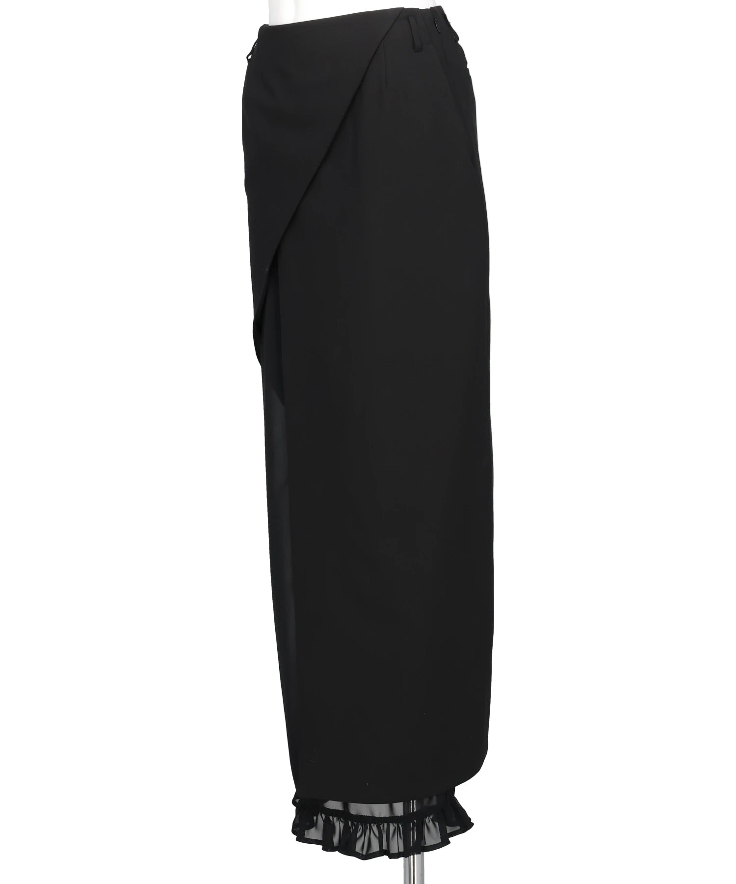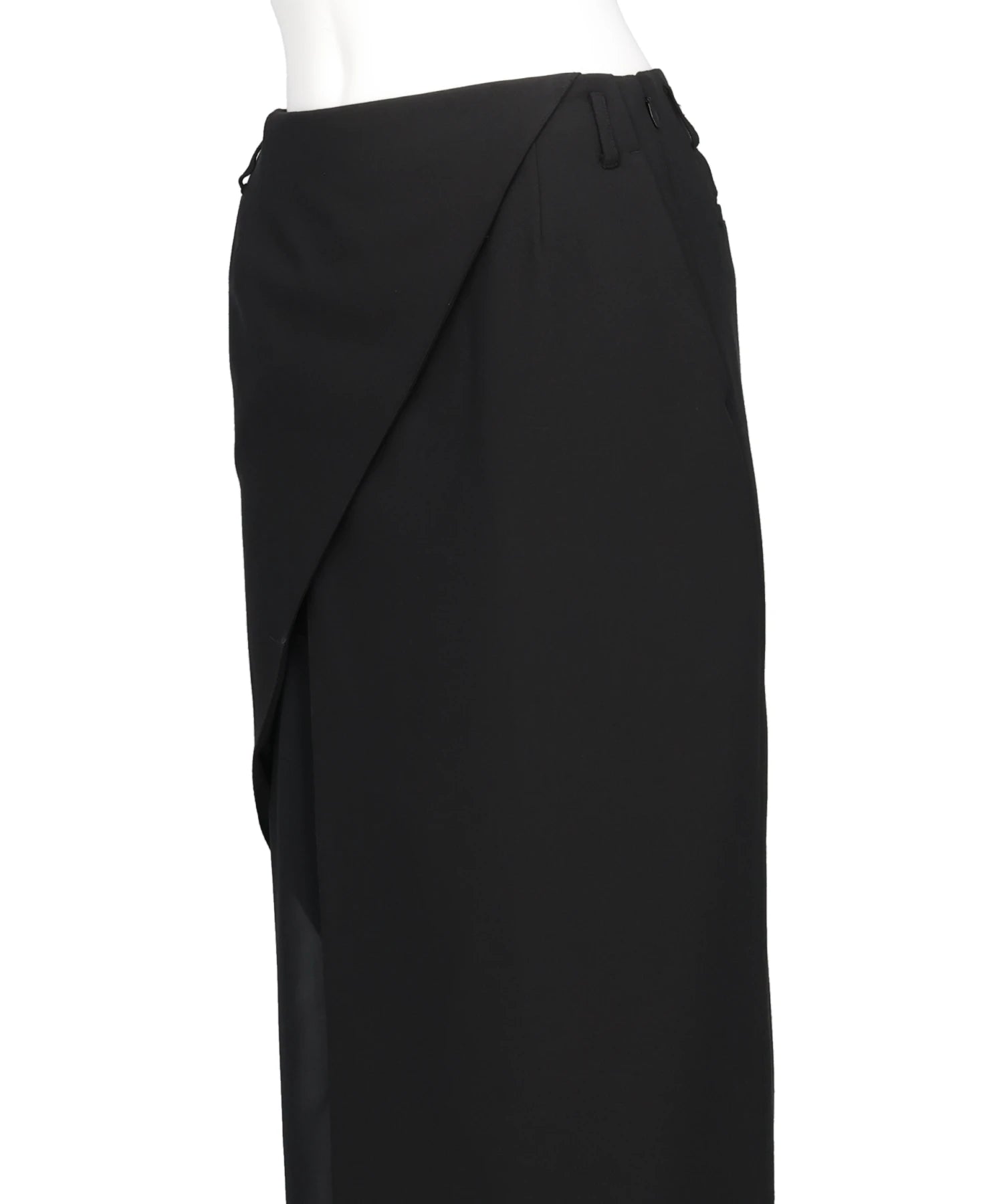 空気でできた柱"をコンセプトに、神聖で幻想的な雰囲気を纏ったデザインスカート。まっすぐ落ちるモードなIラインシルエットと、風が螺旋状に吹き抜けるような斜め切替線が、唯一無二の存在感を放ちます。