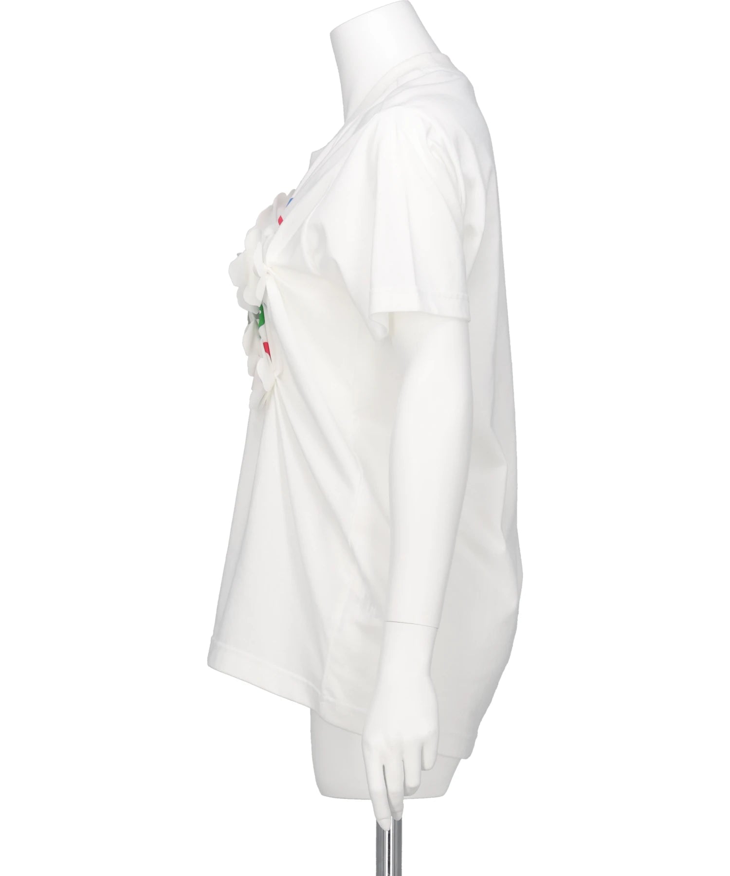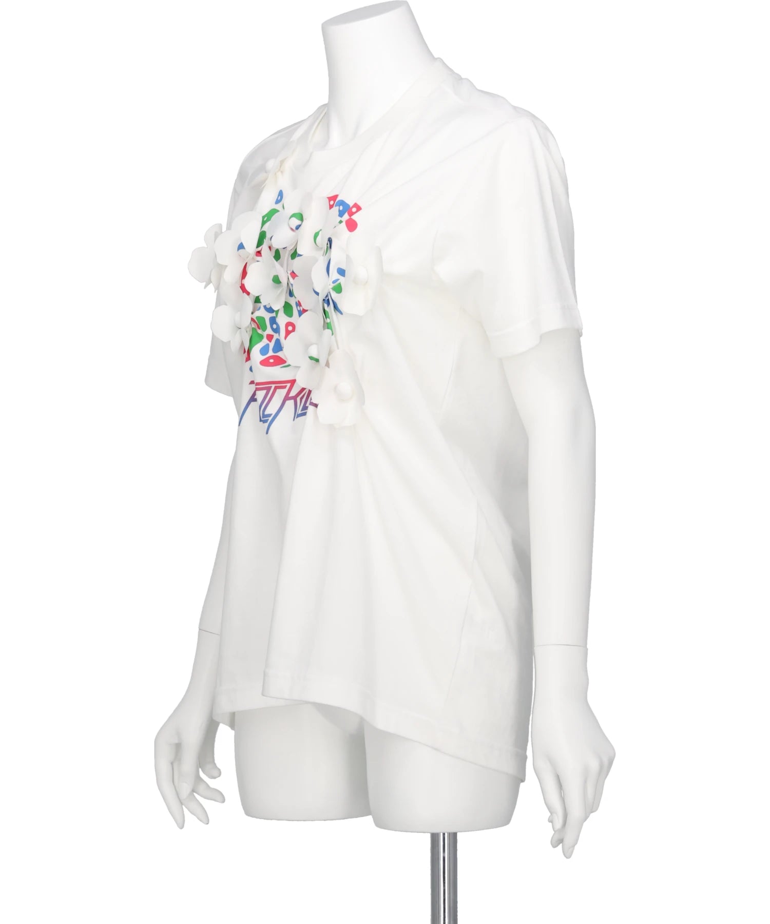 ビンテージTシャツにRIVのフラワーモチーフを施し、新しいシルエットやドレープを生み出し、歪んだグラフィックなど新しい表情を見つけるアイテムになっております。カジュアルなTシャツに体から咲き誇るようなフラワーモチーフを加えることで生まれるコントラストがコンテポラリーな印象になっております。