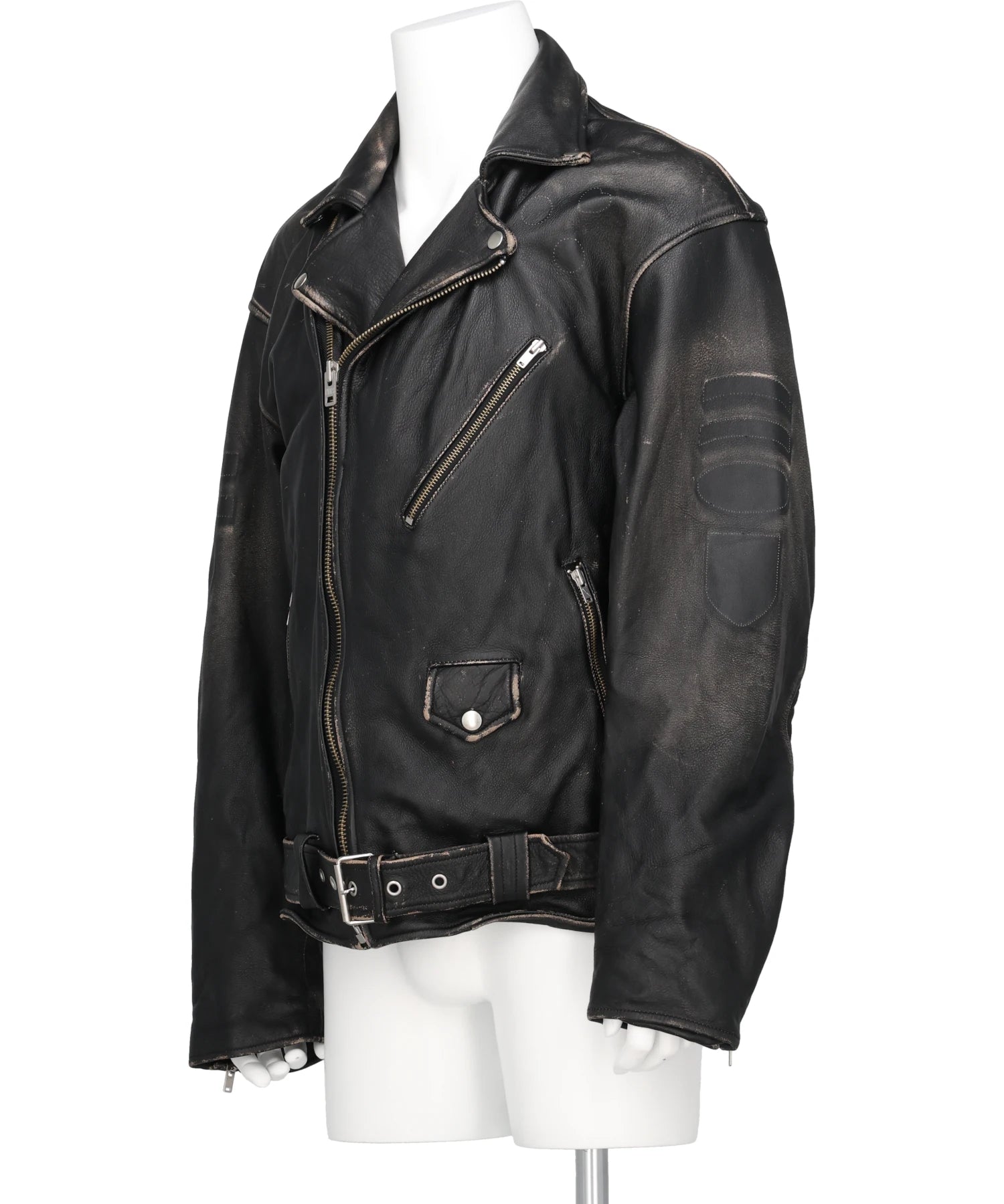 DISTRESSED LEATHER BIKER JACKET