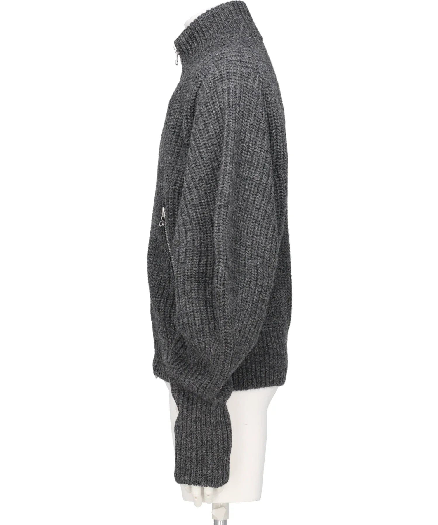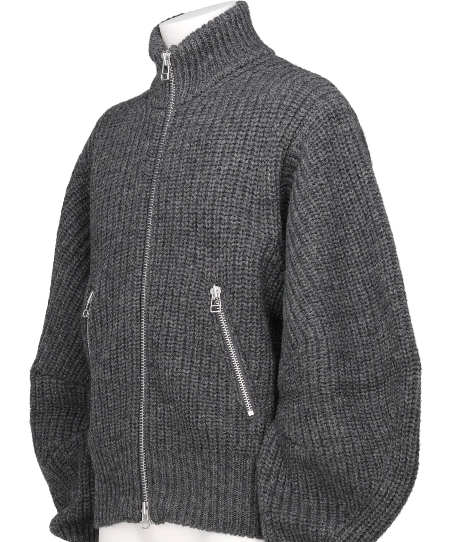 RIBED MASSIVE ROUNDED SLEEVEZIP-UP KNIT JACKET
