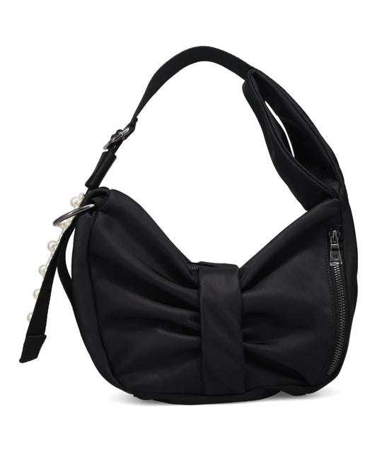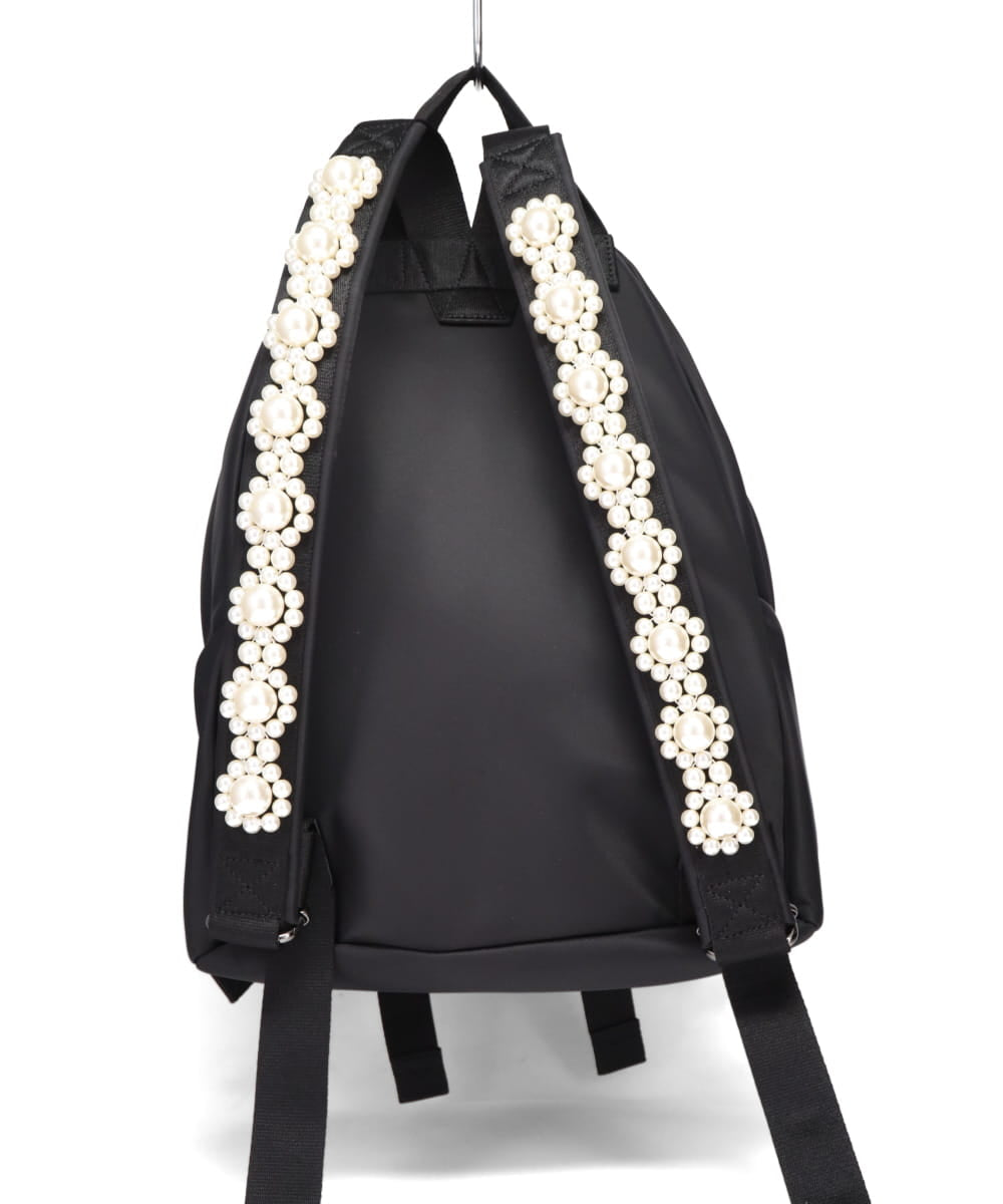 BOW FRONT BACKPACK W/ STRAP EMB - BLACK/PEARL