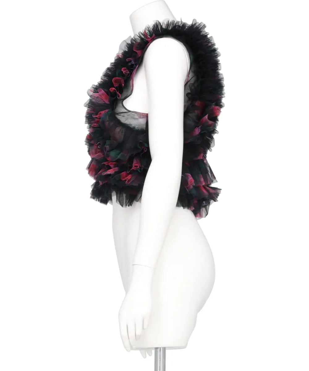 TULLE RUFFLE SLEEVELESS TOP