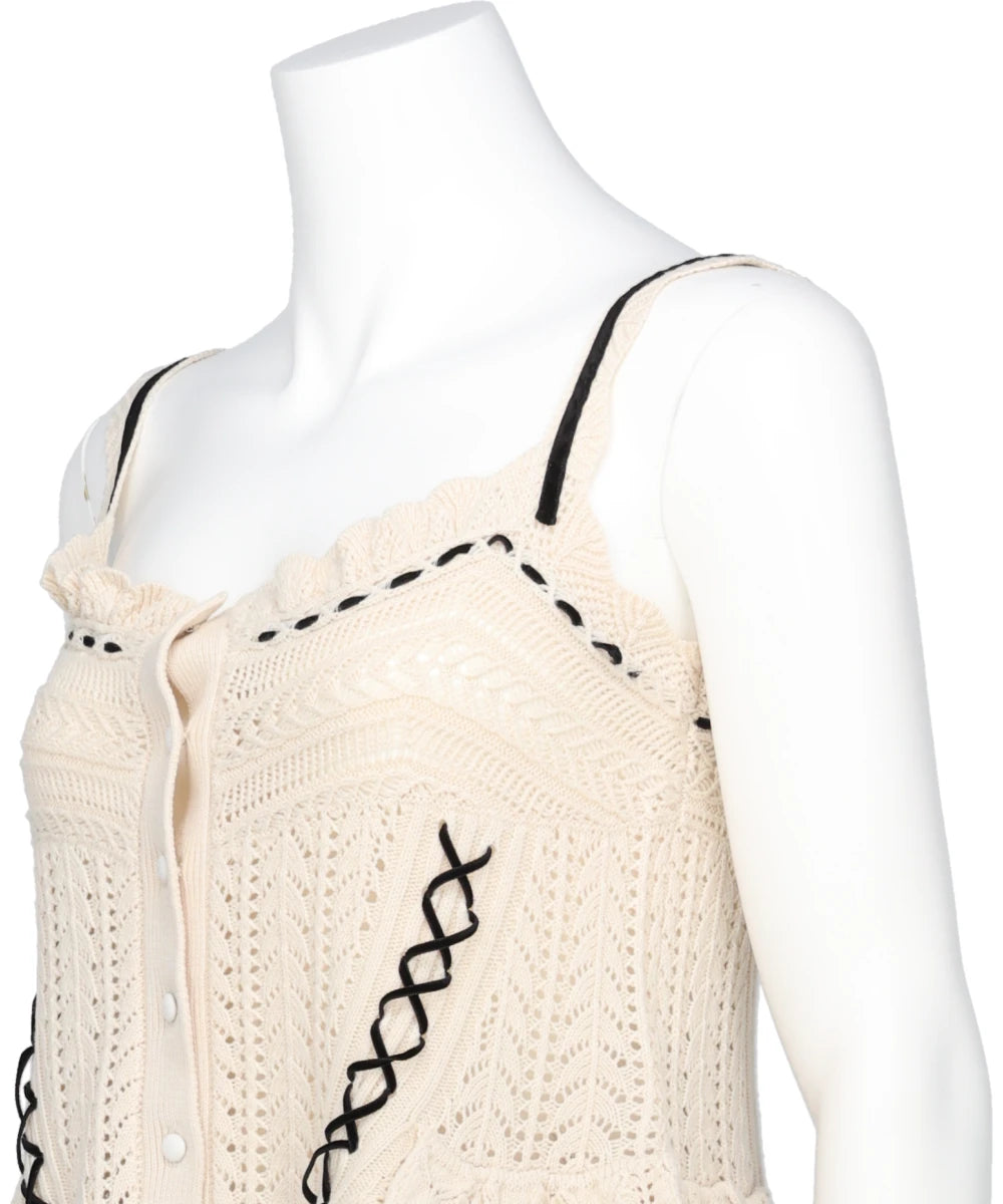 LACE UP RIBBON KNIT CAMISOLE